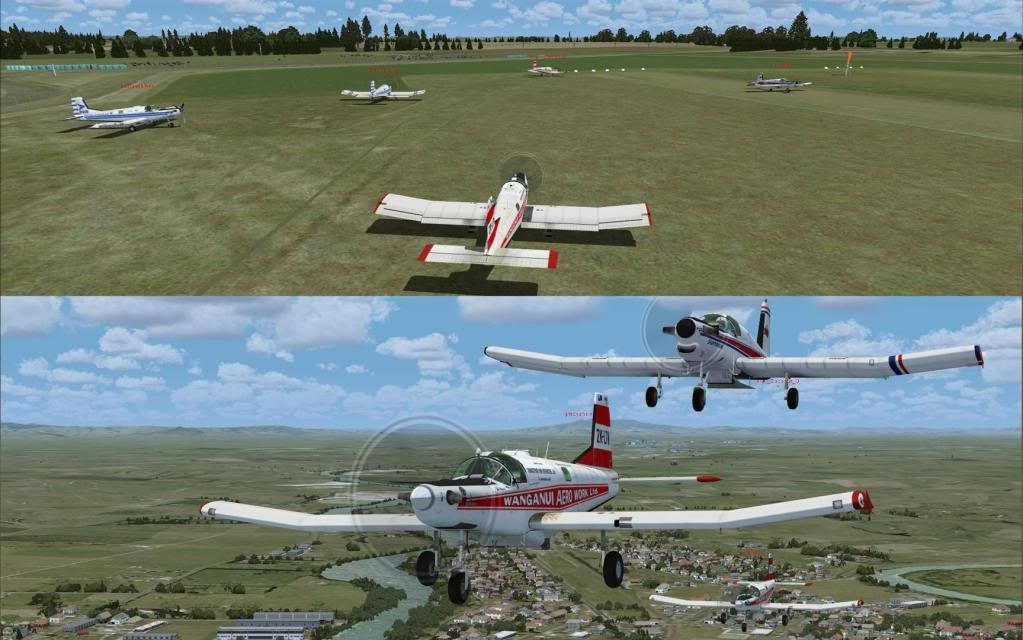 Certainly was fun having 5 of us flying together, though, at times, it did make it a little difficult keeping track of where everyone was. I especially enjoyed crashing while trying to land on the top dressing strip Kade! - well , not really fun about the crash, but it was still good a great experience. The thrill and pressure knowing that the others were watching to see how we could cope as we lined up on finals and then belatedly realised how steep the strip was . . . .