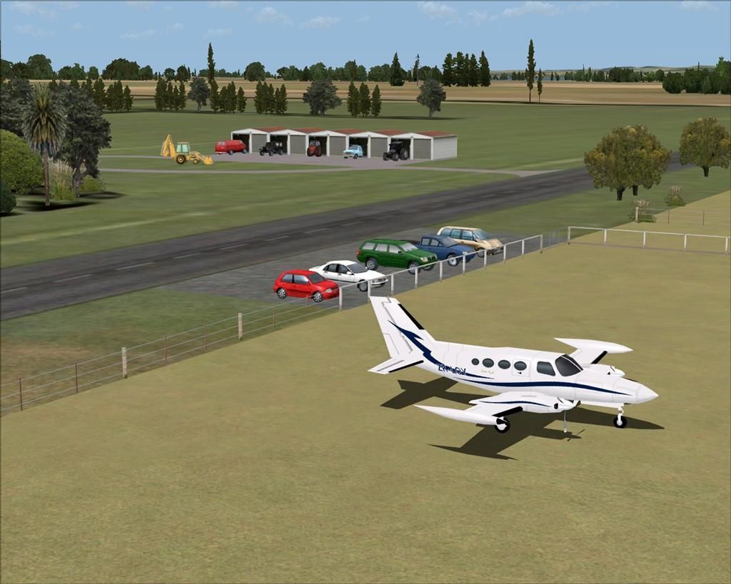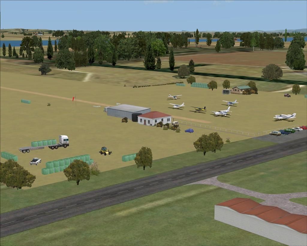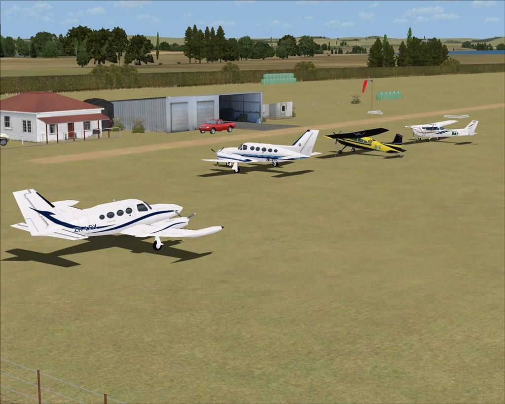 I don't quite think a 402 twin would quite be comfortable visiting the aerodrome Lawrie, although the Otamatea Aero Club aero club boys showed me a photo of a RAAF Caribou that got stuck in the mud there one winter. It would be more realistic with 0 AI parks on the right side of runway 25, it was a real struggle to park both a C182 and C172 alongside each other between the strip and the hangers. The fence line edging from the neighbouring house is actually quite close on the northern side.
