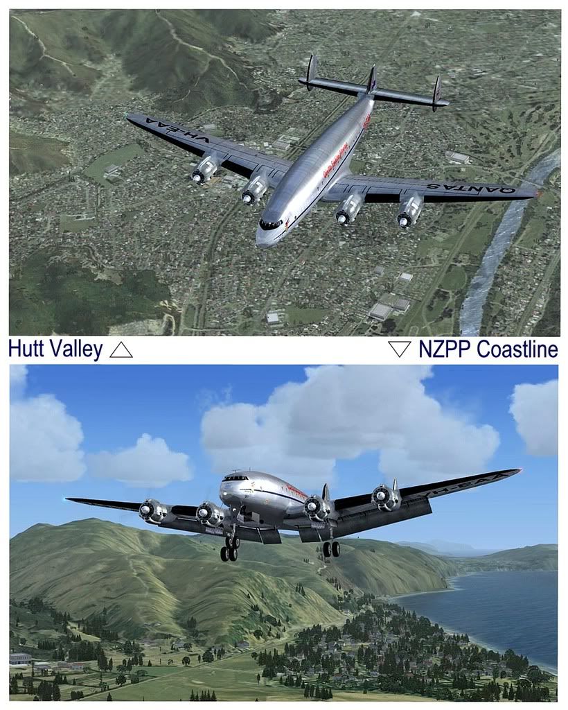Hi-res FSX textures are better, true, but looking up and down at say the NZPP coastal approach, I find them...Plasticky.