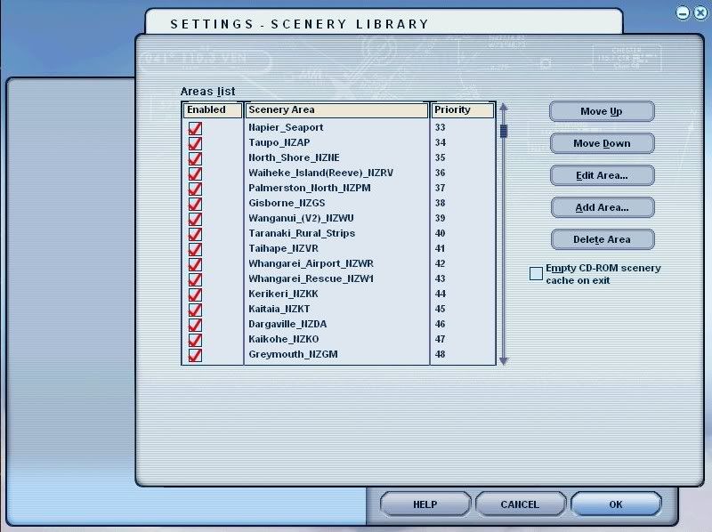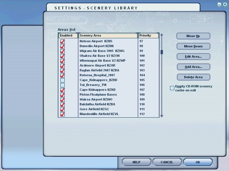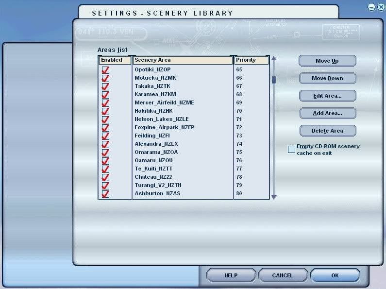 As an example, here are shots of my addons for New Zealand. Bear in mind, i fly mostly in NZ, so i give the NZ stuff priority over any overseas stuff, hence its higher up the list.