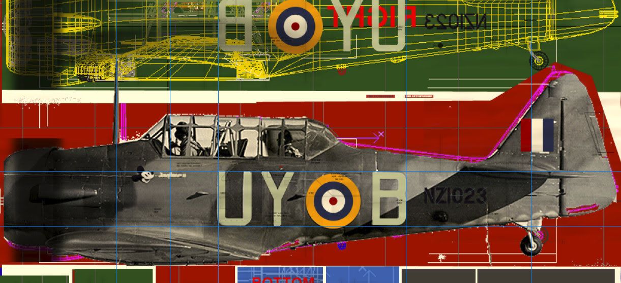 With the roundel, fin flash and lettering layers added, the adjustment lines make it quite obvious that the roundel's size actually has to be decreased for a small number of pixels. Same goes for the fin flash: