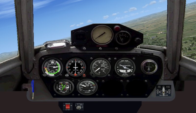 Anyway, I've got a working bitmap based on some real cockpit photos and some standard oldish-school-as-possible gauges placed in about the right locations. A screenie follows, if anyone wants to trial it and give me feedback let me know and I'll flick the panel files to ya. Have got lots of photoshopping to do to clean it up and a few switches to place but its not far away: