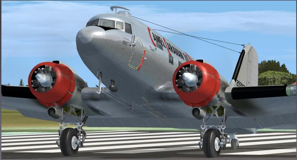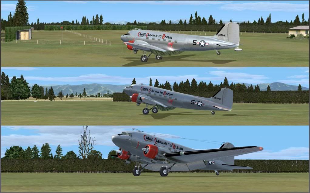 Sounds are rather ridiculous with no remarkable transition from idle to full throttle, and the distinctive "growl" of the Twin Wasps is missing completely. Until its unfortunate crash a year ago, I had the pleasure to see (and hear!) one of the last european-based C-47s here at Berlin on a weekly basis climbing out over my house, so I rather know how the real deal should sound like. I really can't imagine that the flap actuators are the loudest part of the sound suite, as done by JF.