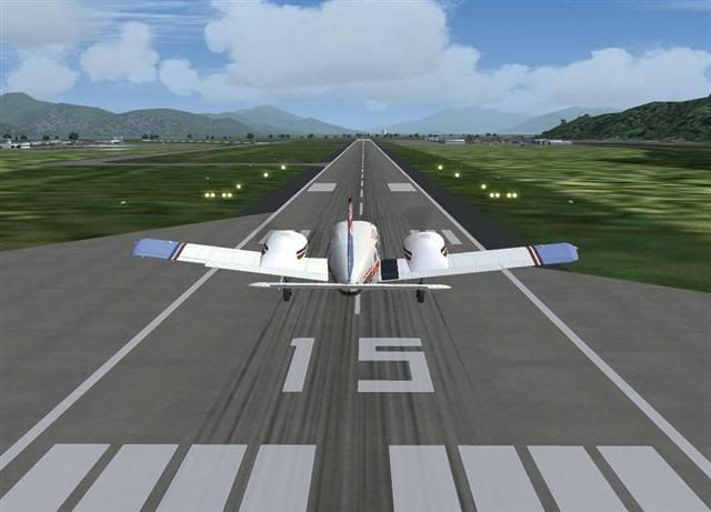 I connected to Multiplayer as I had promised, and met up with "Aloha_Joe"Â￾ "Flyboy"Â￾ and "Slider"Â￾ to continue from Georgetown (YGTN) over to Chillagoe (YCGO) It was a late start, after some technical difficulties with the server, but as soon as it was fixed, we all took off from Runway 6, and turned to a heading of 032 degrees, then climbed up to a cruising altitude of 3000 feet, and flew close together in a tight formation (See screenshot 1: http://i20.photobucket.com/albums/b235/ ... point1.jpg ) over the lush Queensland rainforests. After 91 miles and 30 minutes, I had the runway in sight, and descended into land on runway 35, with no AI traffic or ATC around since we where flying online. Just as I was turning on to finals, the runway disappeared behind a large hill at the end of the runway (Check it out for yourself if you have Andy Weirs mesh installed) and I had to make a very steep approach followed by a quick dive before hitting the tarmac a little too hard, as well as off centre (See screenshot 2: http://i20.photobucket.com/albums/b235/ ... point2.jpg ) for a touch and go landing.