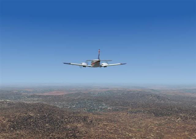 Anyway, now I wasn't on multiplayer anymore, ATC and other AI traffic had returned, and I tuned into the tower to request take off clearance, and was sent to Runway 15 again. I took off and turned back on myself, heading in land along the river at the end of Runway 15, (See screenshot 6: http://i20.photobucket.com/albums/b235/ ... point6.jpg ) then banked to a heading of 232 following a route through the mountains (See screenshot 7: http://i20.photobucket.com/albums/b235/ ... point7.jpg ) that bordered the western suburbs of the city (See screenshot 8: http://i20.photobucket.com/albums/b235/ ... point8.jpg and 9: http://i20.photobucket.com/albums/b235/ ... point9.jpg )The mesh took my breath away, it was so superbly built, and beats the default terrain of the Himalayas by far, which before today, I used think couldn't get any better. I really, really recommend you all to download Andy Weirs mesh off avsim and take a flight around the Cairns countryside- nothing else compares to it, I promise you!