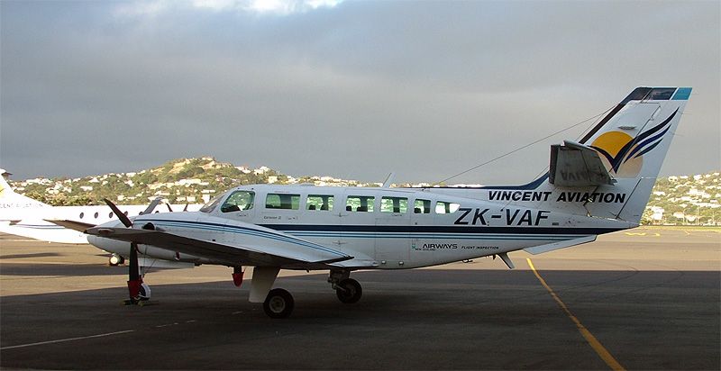 An outside view of our aircraft for the day, ZK-VAC, which had been stuck in the mud just before and we needed to push out: