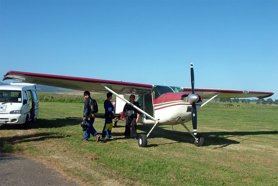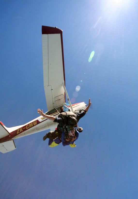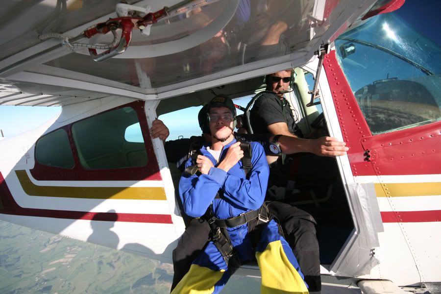 For my 20th bday, my rents bought me my first skydive down at Mercer in Waikato. It was a tandem jump from 12,000 feet, approximately 60 seconds of freefall and another five minutes under parachute canopy down from 5000 feet to landing back at the strip- one of the best things I've ever done in my life We didn't book the camera guy to join us, but it was such a nice day on Wednesday, he chose to come up with for the ride anyway. Thought I'd share some of the snaps here on the off chance I can tempt anyone else into giving it a go: