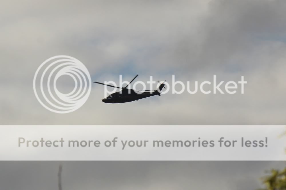 Great pics. They don't show the sign that shredded on arrival by the rotor wash or the car that almost got blown off its wheels on departure.