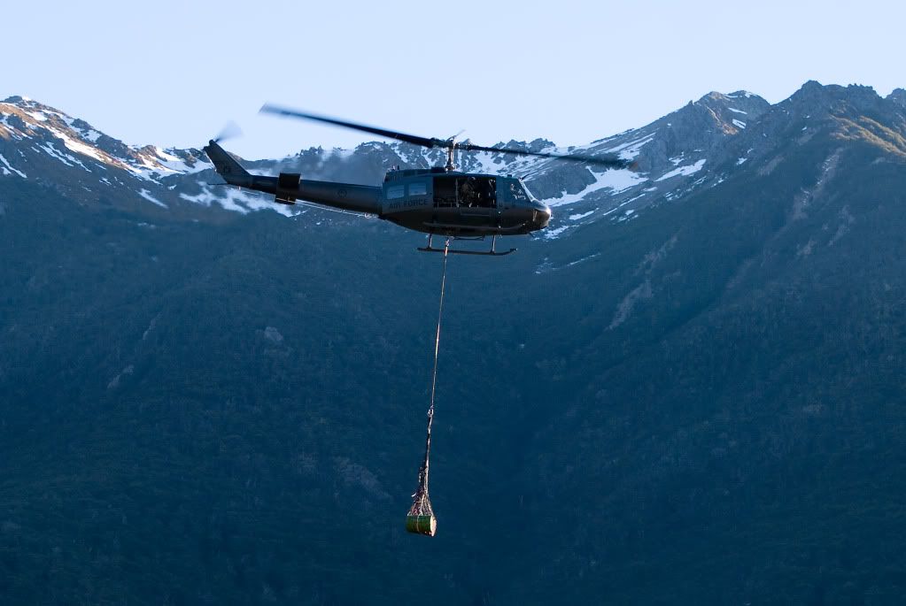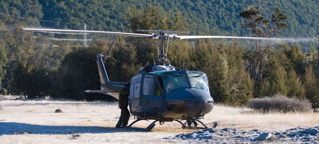 We didnt bother de-icing the main rotor. Just crank them up and the ice falls off and melts from the air friction. You can see the ice comming off in this photo.