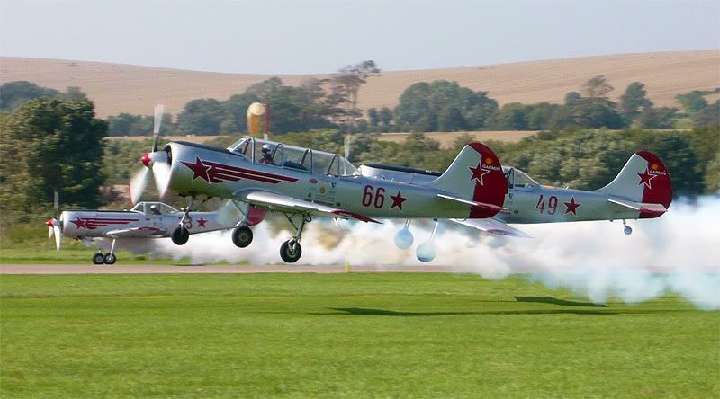 Not the best attempt at the heart shaped smoke pattern, however, they finished off with a three ship smoke ‘tunnel’ that the fourth Yak flew through in the other direction, which was very impressive.