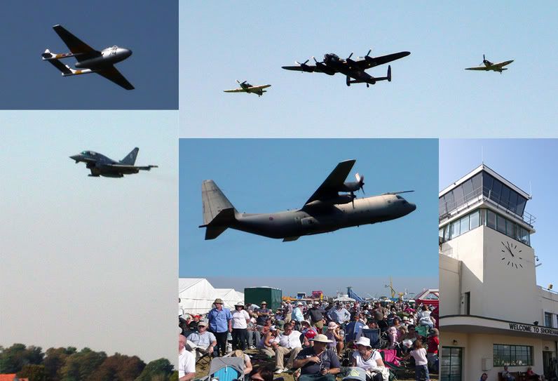 De Hav Vamp T11.. Battle of Britain Memorial Flight (6 Merlin engines combined there- sounded amazing!), Eurofighter Typhoon (piloted by Charlie Matthews, ex RNZAF pilot from Napier).. C130J again, the famous 1930’s control tower, and the crowd at Shoreham.
