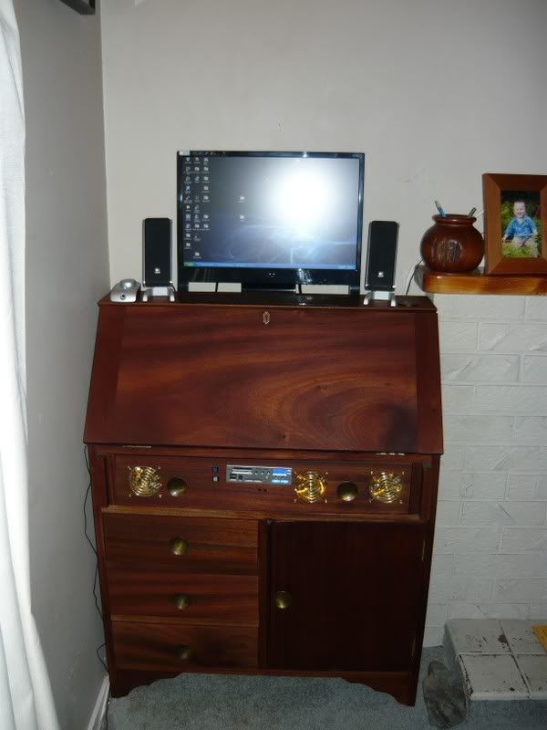 Sanded back desk,oiled and replaced with new brass fittings and fitted with parts which I was able to get from a NZ site called Modster PC