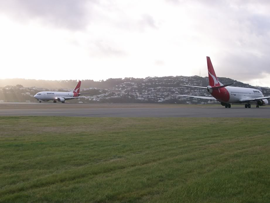 A rarity, two QANTAS 737's taxiing, one behind the other, within 20 seconds of each other