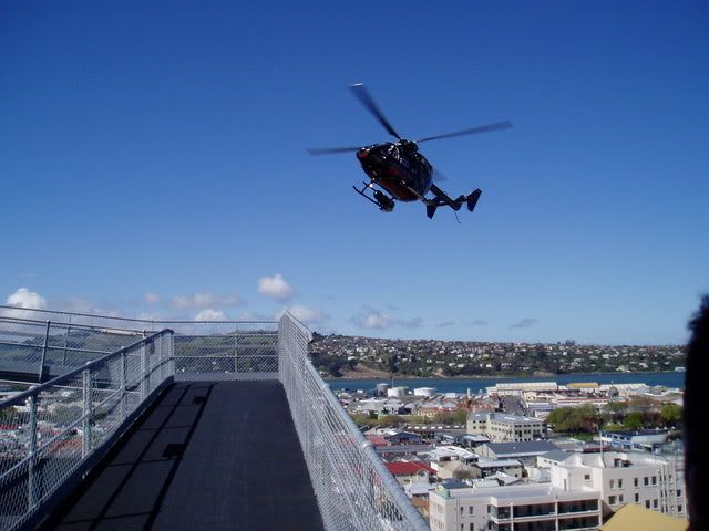 Yes the first couple of shot are taken from the roof of the hospital. The drop off from 9 stories up is rather impressive. If you look carefuly you can also see the rescue webbing around the pad. If you fall one way ist only about 3 meters to concrete but the other......its a _long_ way down.