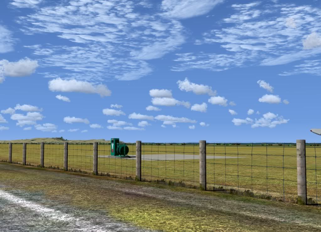 A fence, a fuel pump and an empty airstrip...well almost, theres a wing tip.......but still a great (i think) scene in it self.
