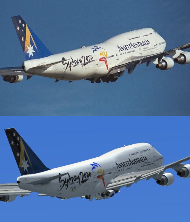 ) had no visible cloud, which made this a snap. Also, the aircraft in the photo has had its Olympic rings removed (since it was after the games).