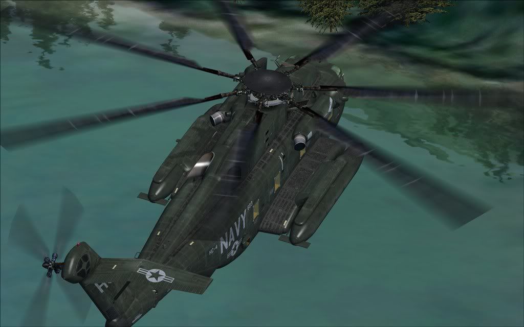 My model was the freeware MH-53J so the rotor blades got lost in the cloud, but that must be a major issue when flying in close proximity.