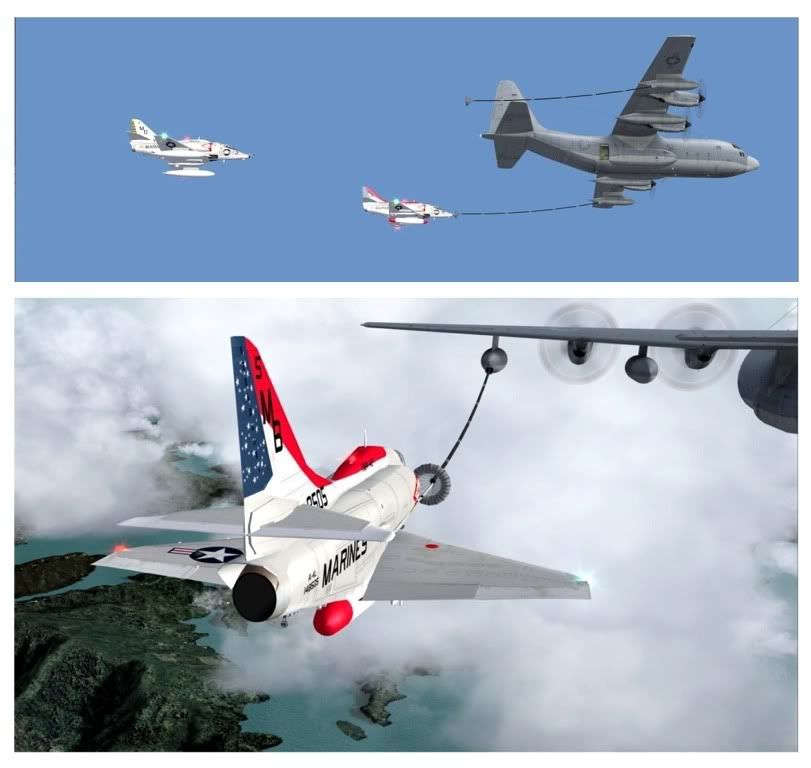 How on earth does that refueller cable work- such precision to line those three up, is it just trial and error or does it automatically lock on to the skyhawk noses?