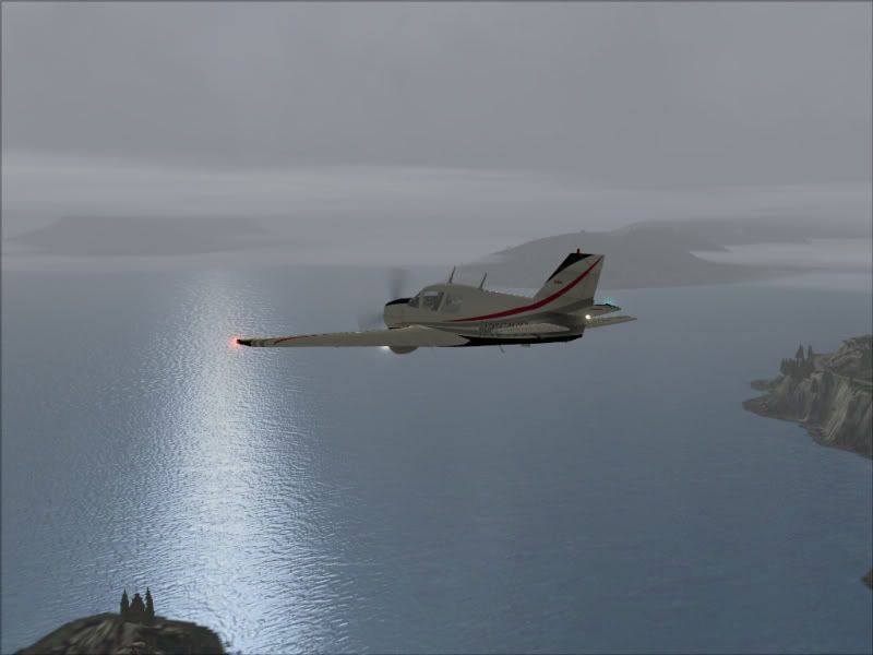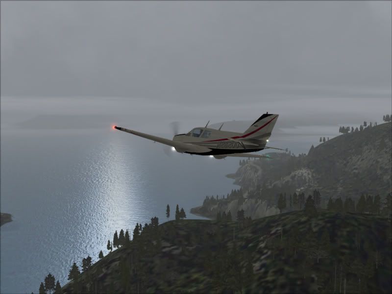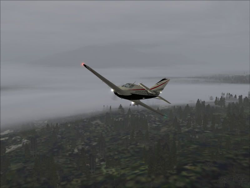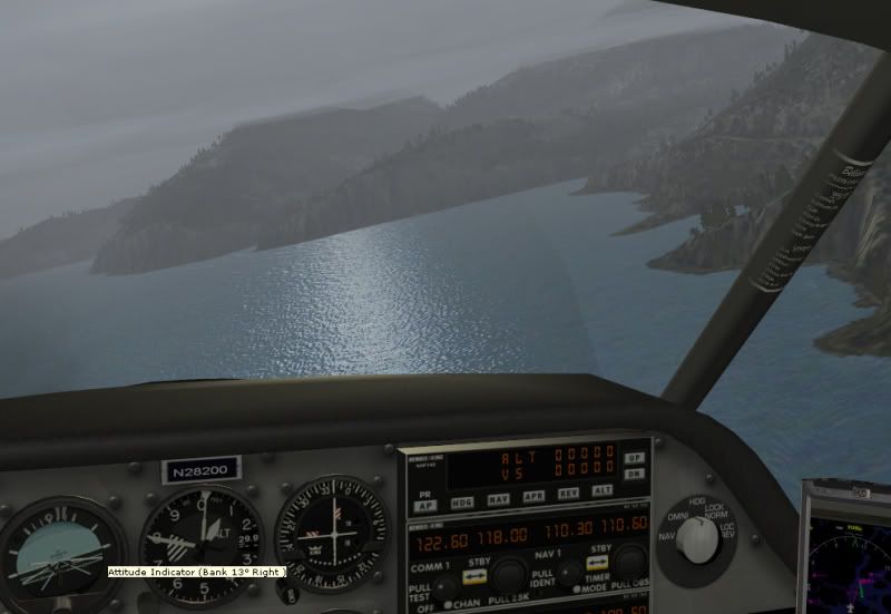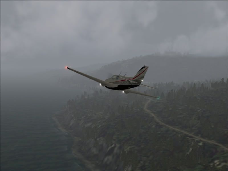 Hmm - maybe I should switch to IFR or turn back???? Nah - I will press on (its a very short flight anyway) and do some low level scud running along the coast (I am sure this is how many pilots get into the deep poo) - not the best aircraft for this with its twitchy handling and high performance - I am doing well over 220 knots.....