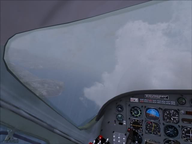 So I headed back to the motel where I picked up my gear, and headed off to the airport. When I arrived it was bucketing down. I ran through the pre-flights and jumped in the Cessna. Fired her up and taxied to the runway. I had to hold short for a while as first a Nelson Air Beech 1900D touched down, followed by a private Cessna 152. After the pair passed it was my turn. I pushed on the gas and we had lift off over Nelson. As soon as the wheels left the tarmac we got blown like buggery! I managed to gain control and lift up into the cloud.