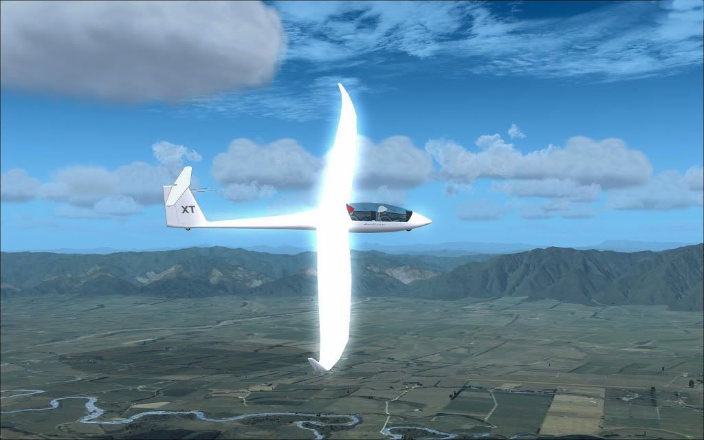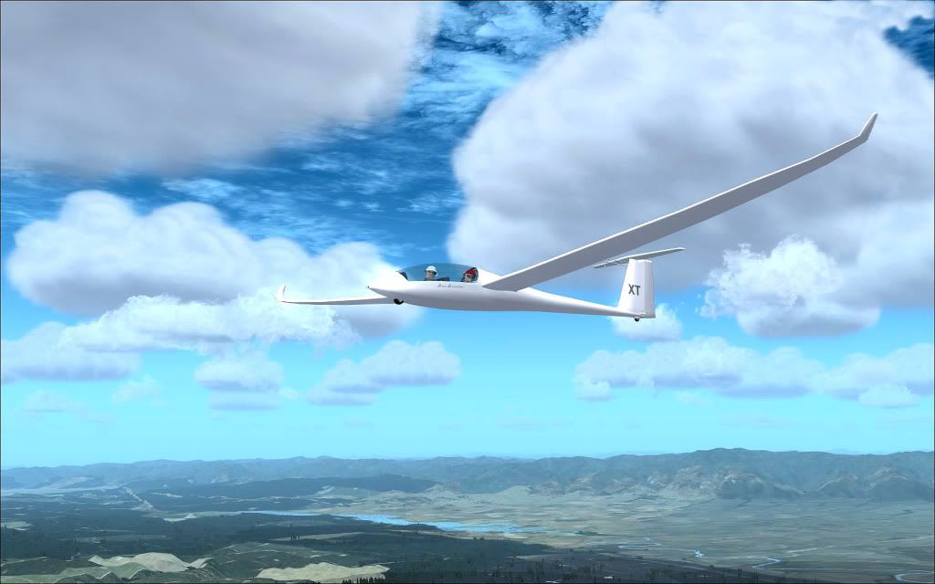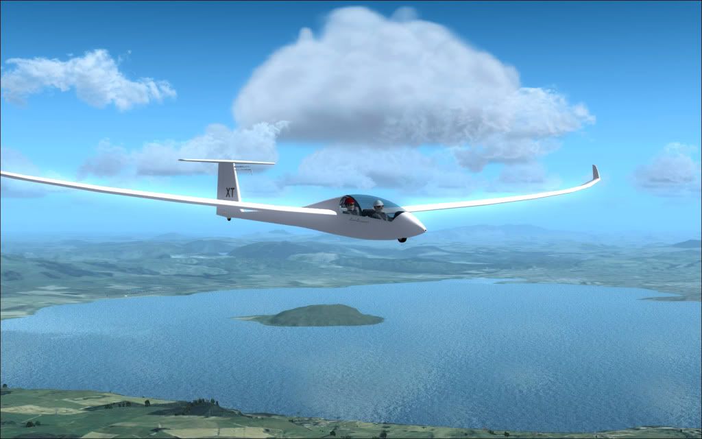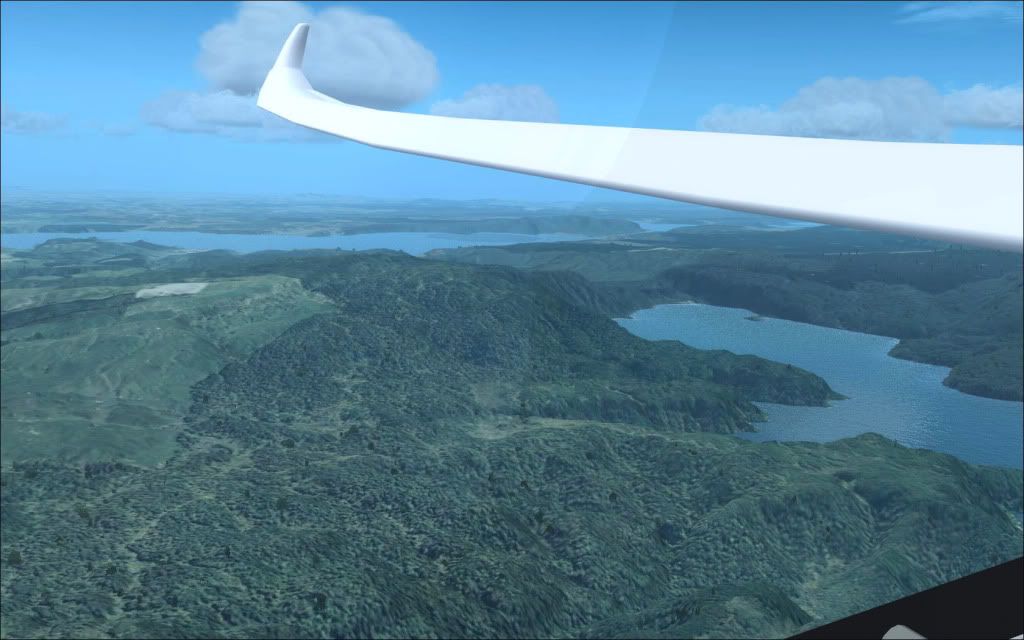 Following on from the last set I posted in the screenshot section, here's the return flight from Galatea to Tauranga via Tarawera and Rotorua in a DuoDiscusX... Launch was via the WinchX addon, to 1300' with 2 POB and 200L of water ballast. CumulusX was pumping out weak to average thermals and a 10kt NWer, so dolphin flying (straight-lining at speed, pulling up and bleeding off speed to maximize time spent in lift and circling only when absolutely necessary) was the order of the day.