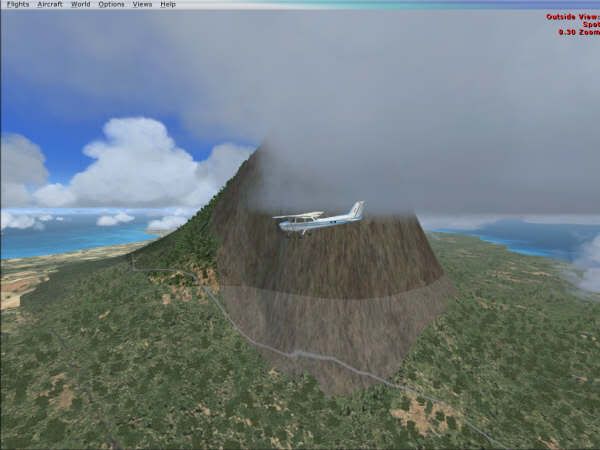 Sorry i was babbling, The mountain that i took photos of in the flight sim is known as Green Mounatin which is on Tanna island in Vanuatu. It reminded me of Devils Mountain which is located in Oklahoma, America. Devils Mountain was used as the landing site for the Aliens in 'Close encounters'. I haven't been able to find one picture of Green Island on the net, so i started to wonder if i had my bearings right or if Microsoft had made a mistake. It's quite a striking mountain to see and you would imagine there would be at least one photo on the net.