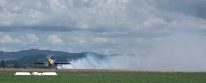 The rotary engine he used was a 13B twin turbo with the contra-rotating prop. You could here him flying 10 km away!!! It produced somewhere near 550Hp and it wasn't possible to hold the nose down at full throttle...