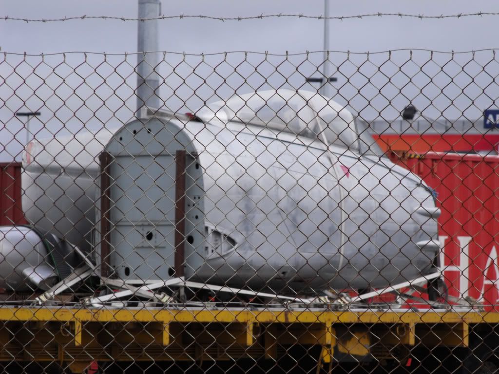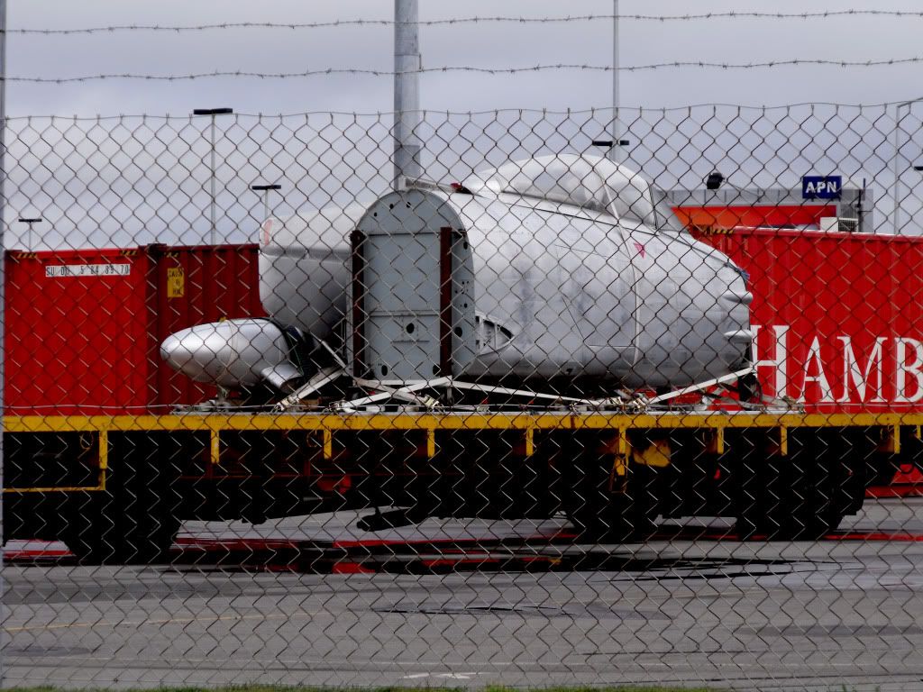 Just a forward section, tail parts and 2 wing tanks......any clues as to where it might going?....or come from.