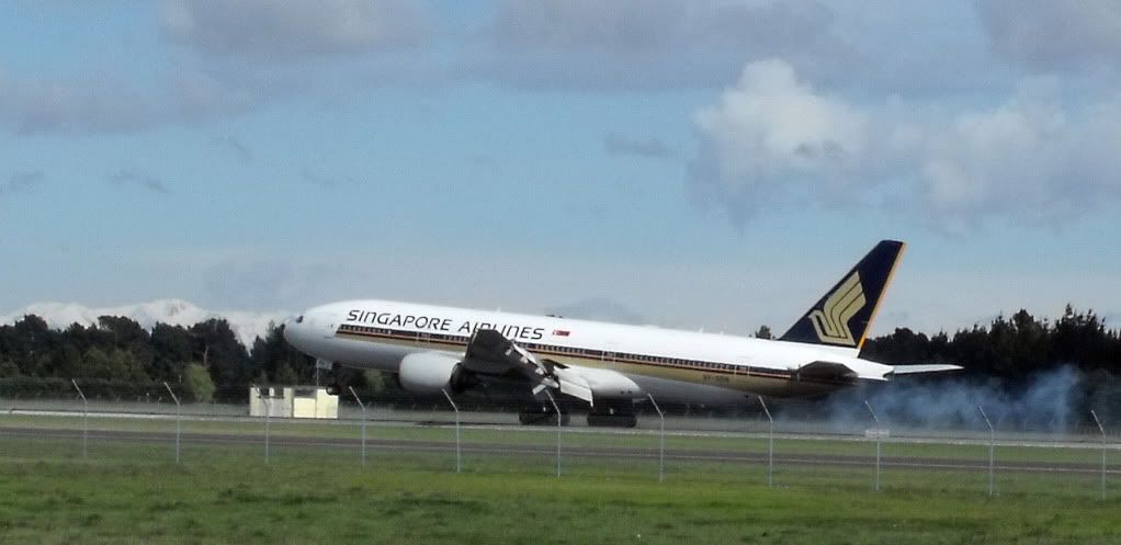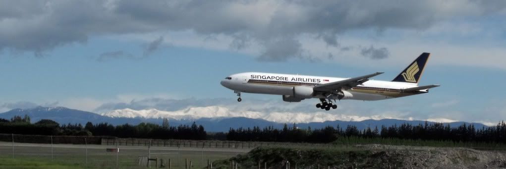 The second last photo of the Singapore Airlines 777-200ER is great! The alps make a great backdrop for the landing plane.