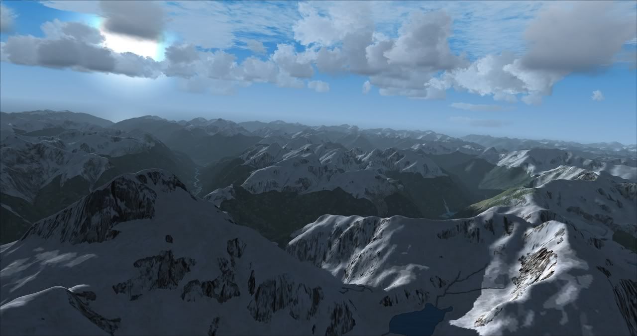Works a treat on default terrain. 2 pics 1st shot default fsx, you will see everything is pretty well lit up even the valleys considering that the sun is just peeking out over the horizon at 5:30am.