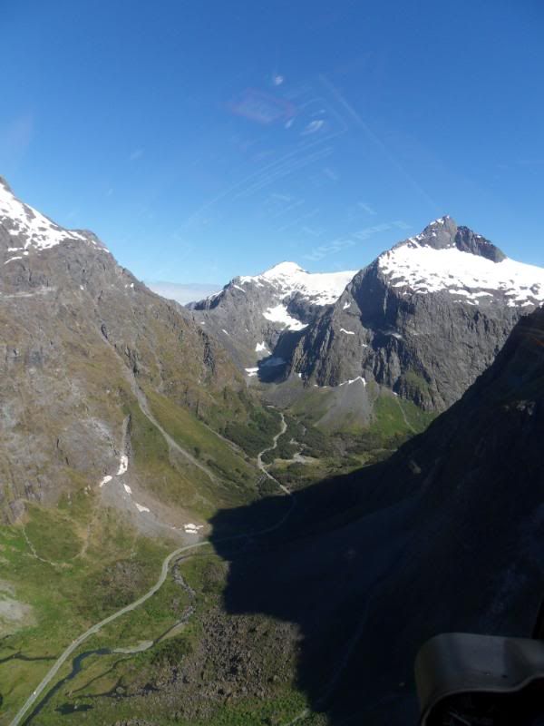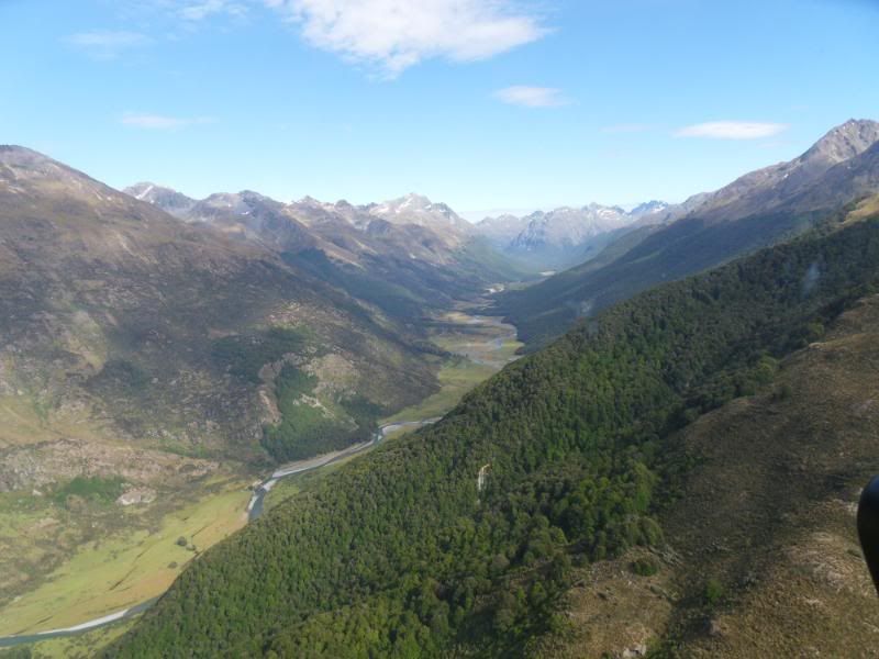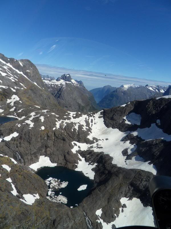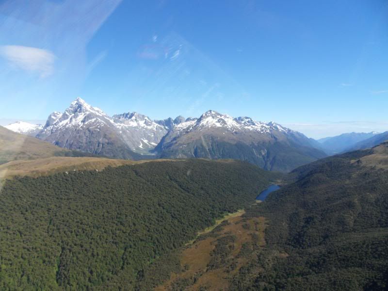 It was my first time flying in this part of the country. Got gas in Wanaka, didnt take any photos there unfortunatly. Had a VERY close encounter with CAG with a muppet pilot who didnt believe in making radio calls angry.gif I got a briefing from the good blokes at Wanaka Helicopters and then proceeded to head for Queenstown. Surprisingly easy place to fly into. Spent the night in Queenstown that night with a mate. Next morning we decided to head for Milford, just for something to do. The guys at Heliworks were good enough to give us a briefing and keep an eye on us while we were going in there.
