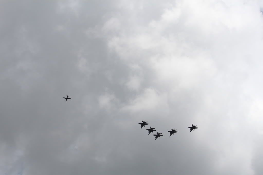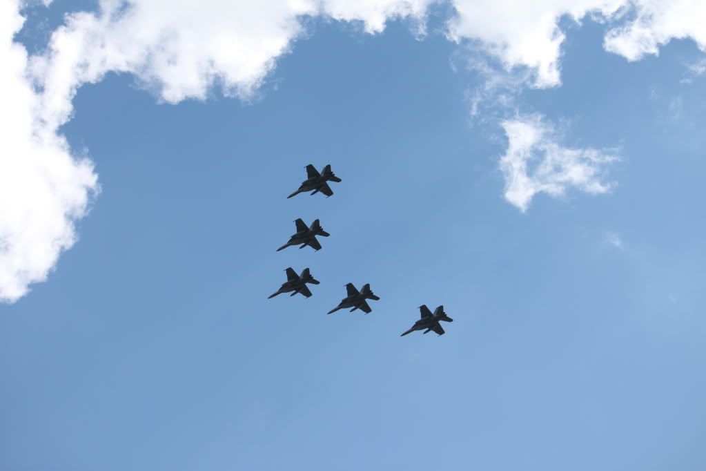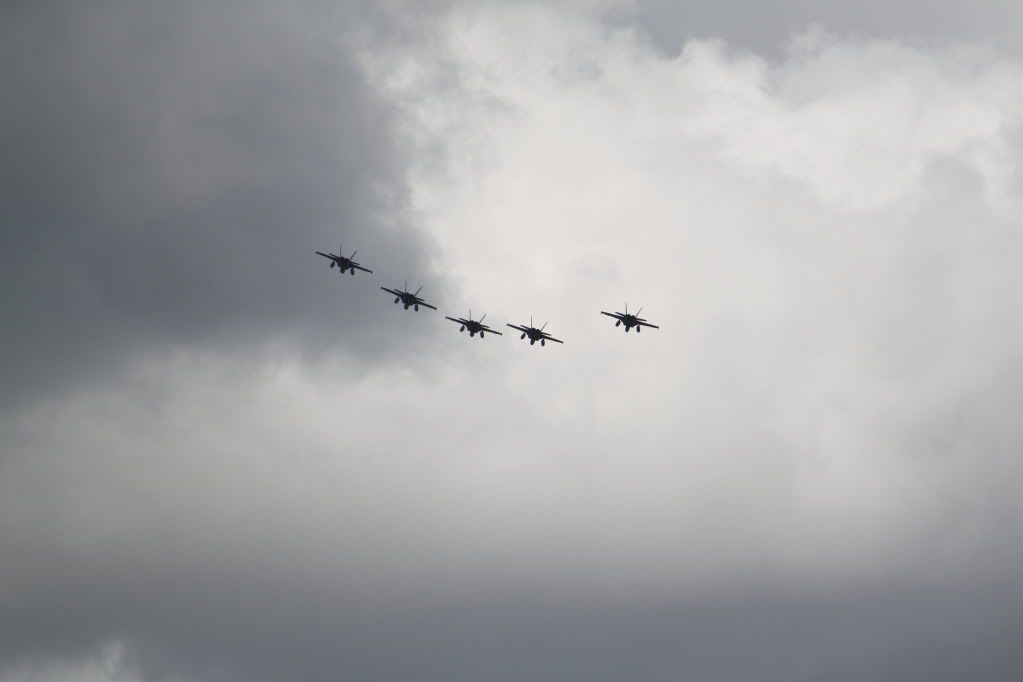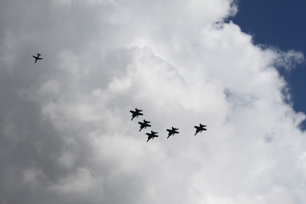 hi guys, well fresh from their flight from nz, and being lead by the retiring f-111's the F-18's did a fly buy over our place, here are the undeited pic, they arn't that flash, due to the sky and light conditions,