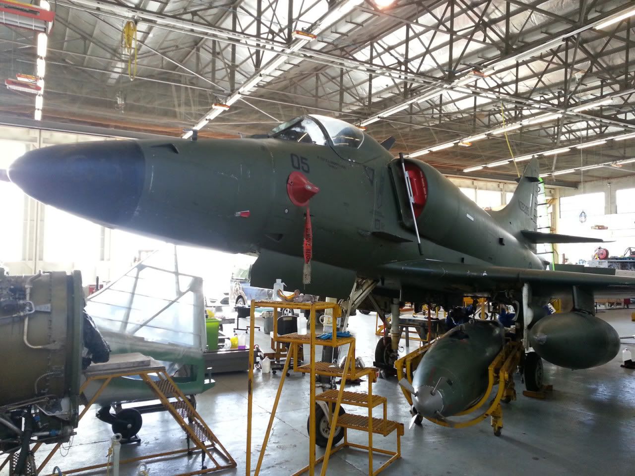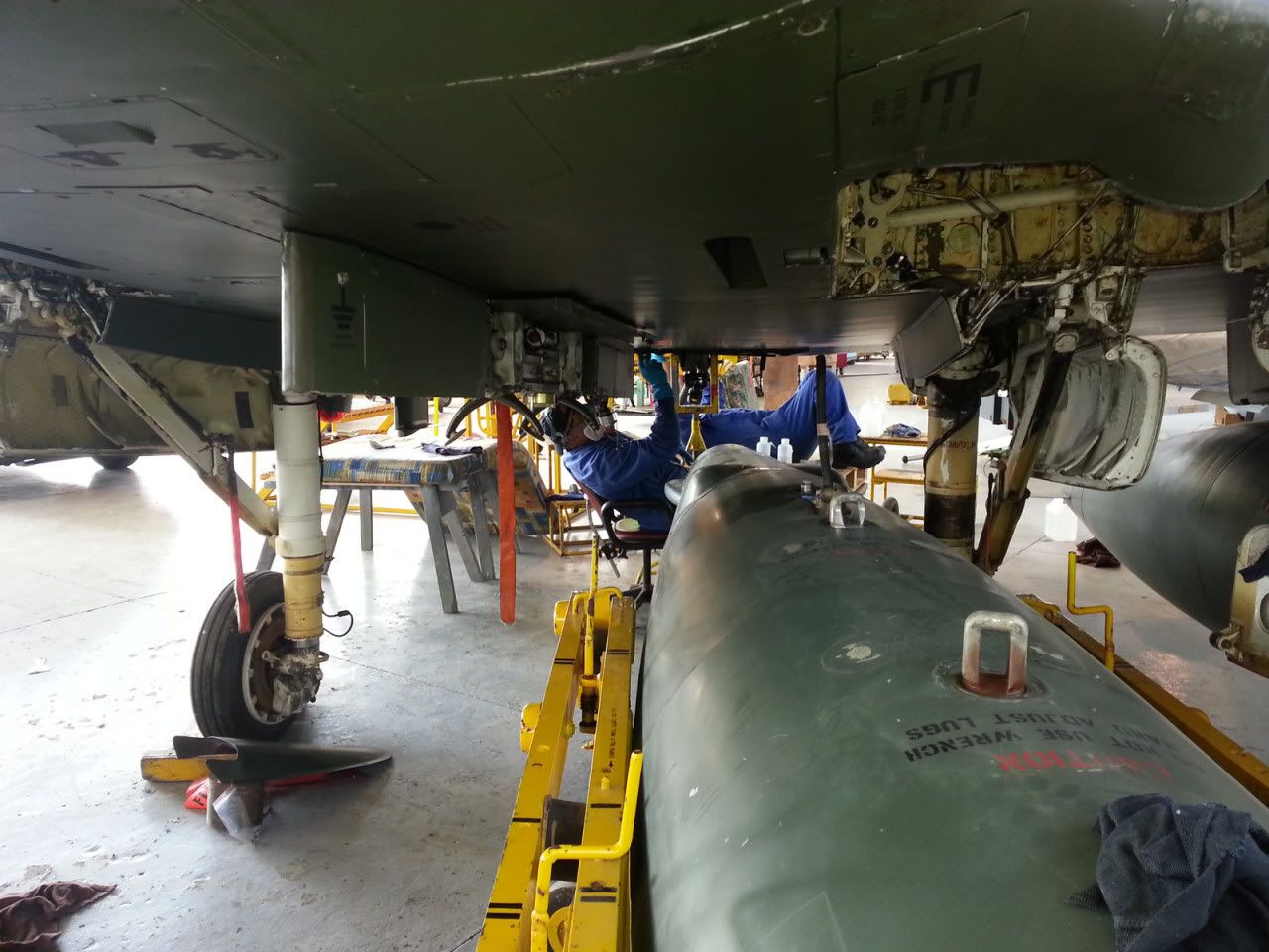 we had both tanks on one wing while the last bits were done, just to save space in the hanger. Moved them over , once the work was done, and put the centre line tank in place.