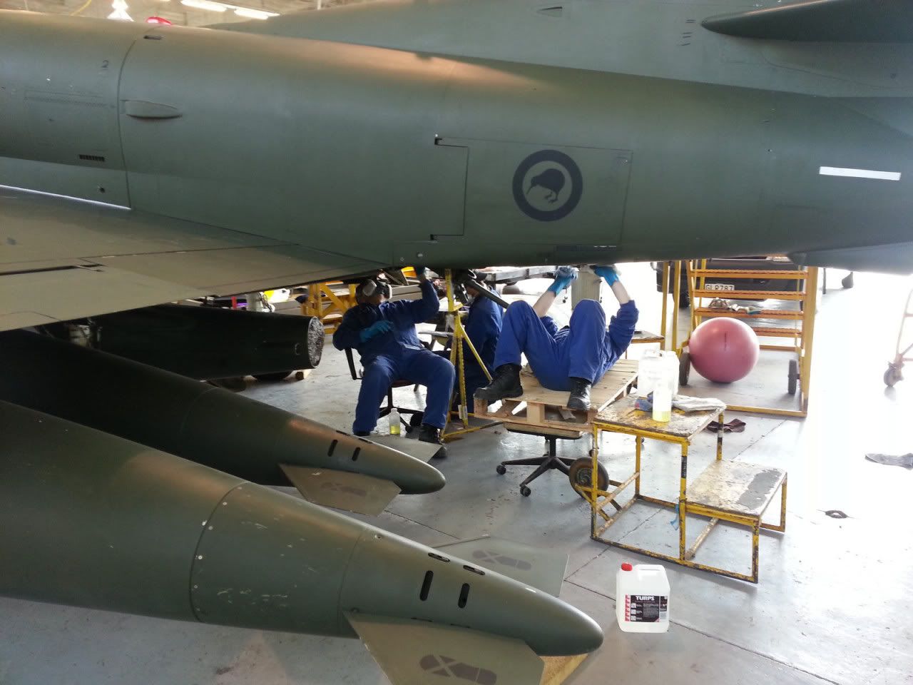 Pete , they are cleaning off the last little bits of spaylat ..... ##### of a job, useing MEK (Horrible stuff ) hence the masks.