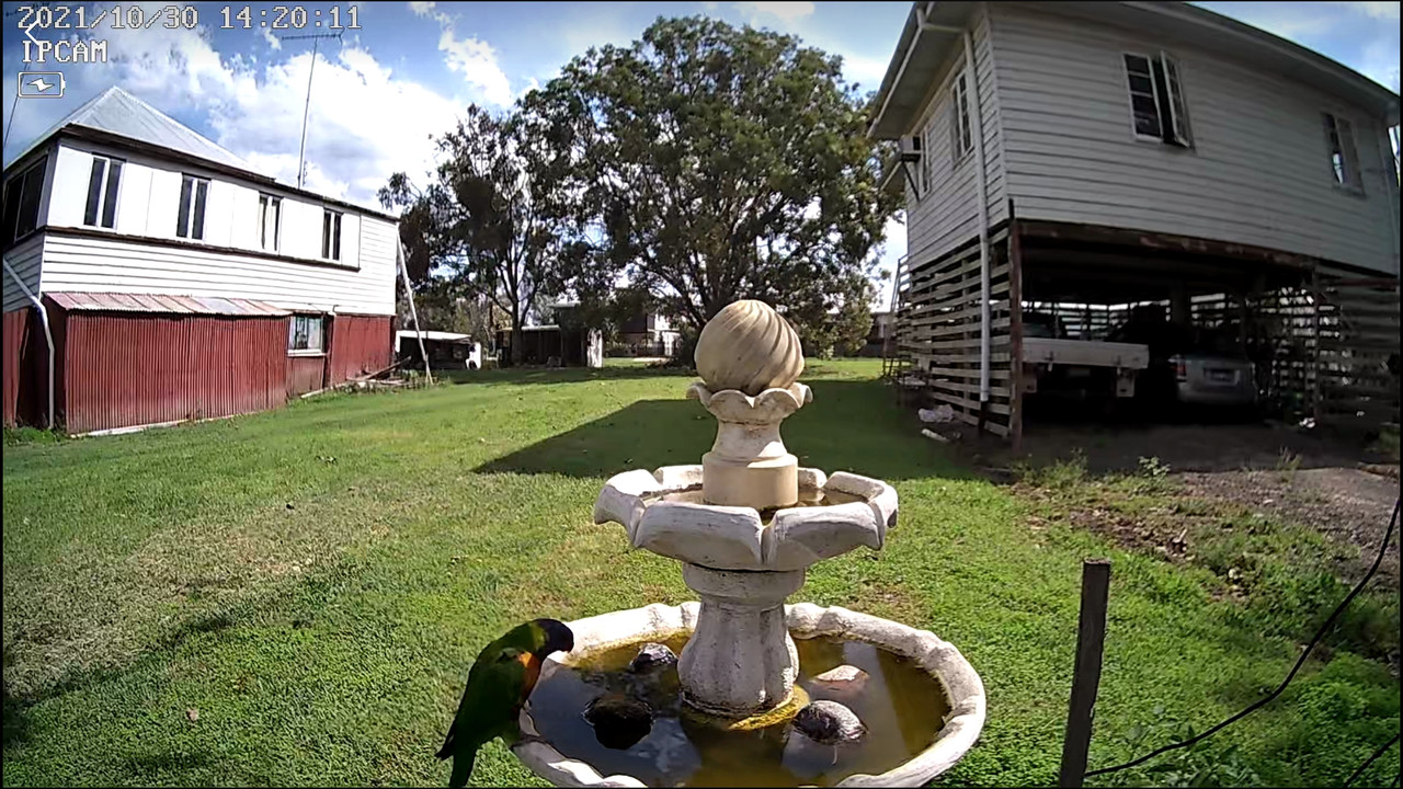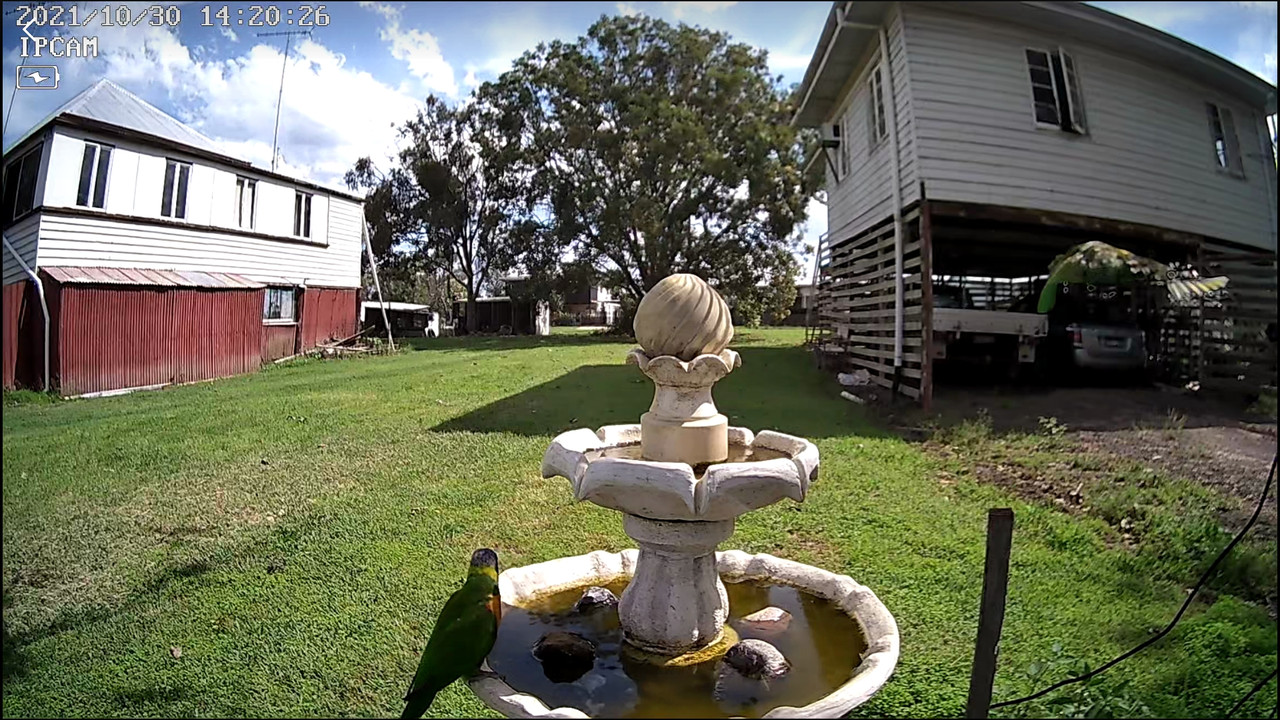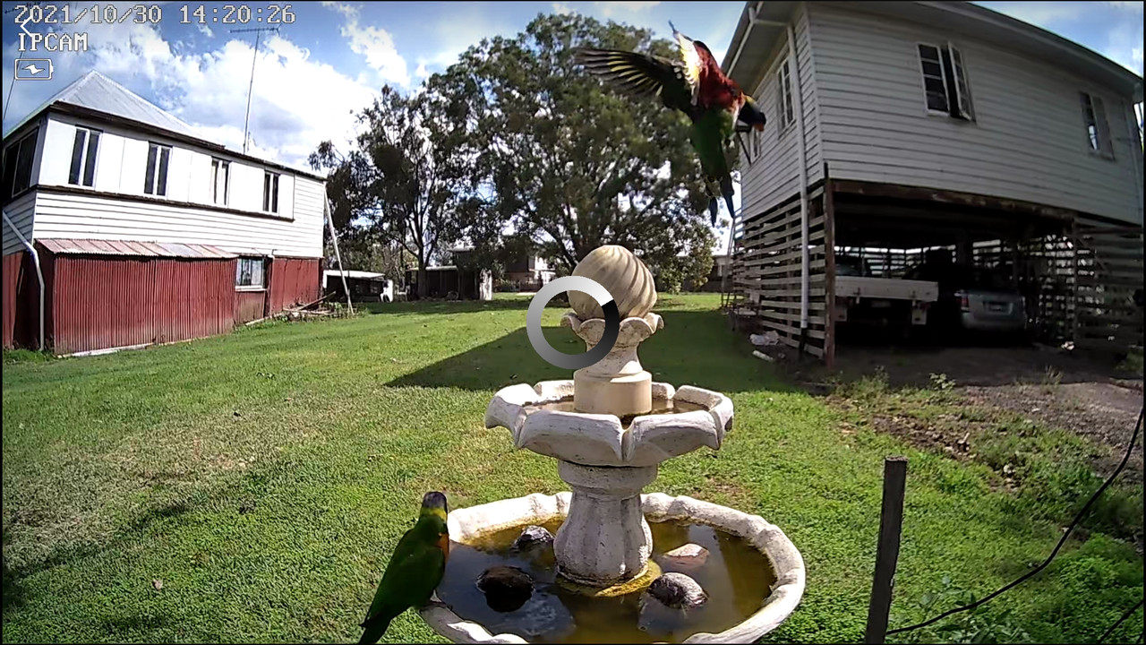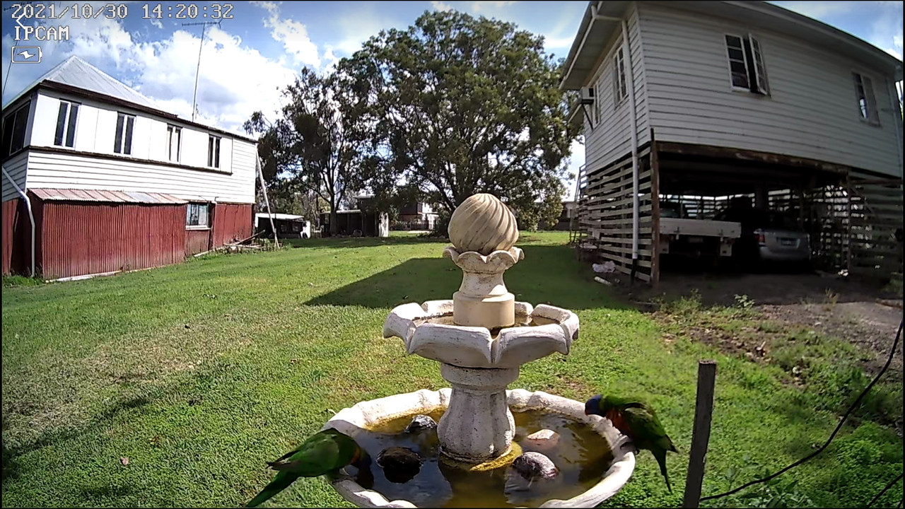 I bought a solar charged wifi security cam, to get closer to the birdbath, and fluked this sequence of lorikeets landing while I was finding a good viewing spot.