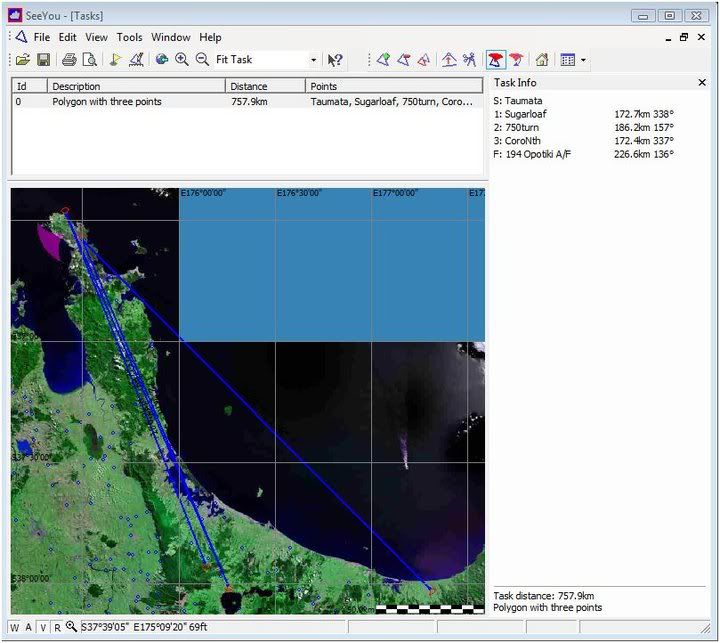 Firing up FSX shortly... A mate in Tauranga has sorted out a 750km task to fly in his DG400 (self launching machine, much like the DG808) so I grabbed the turnpoint details and drew up a plan to fly in FSX.