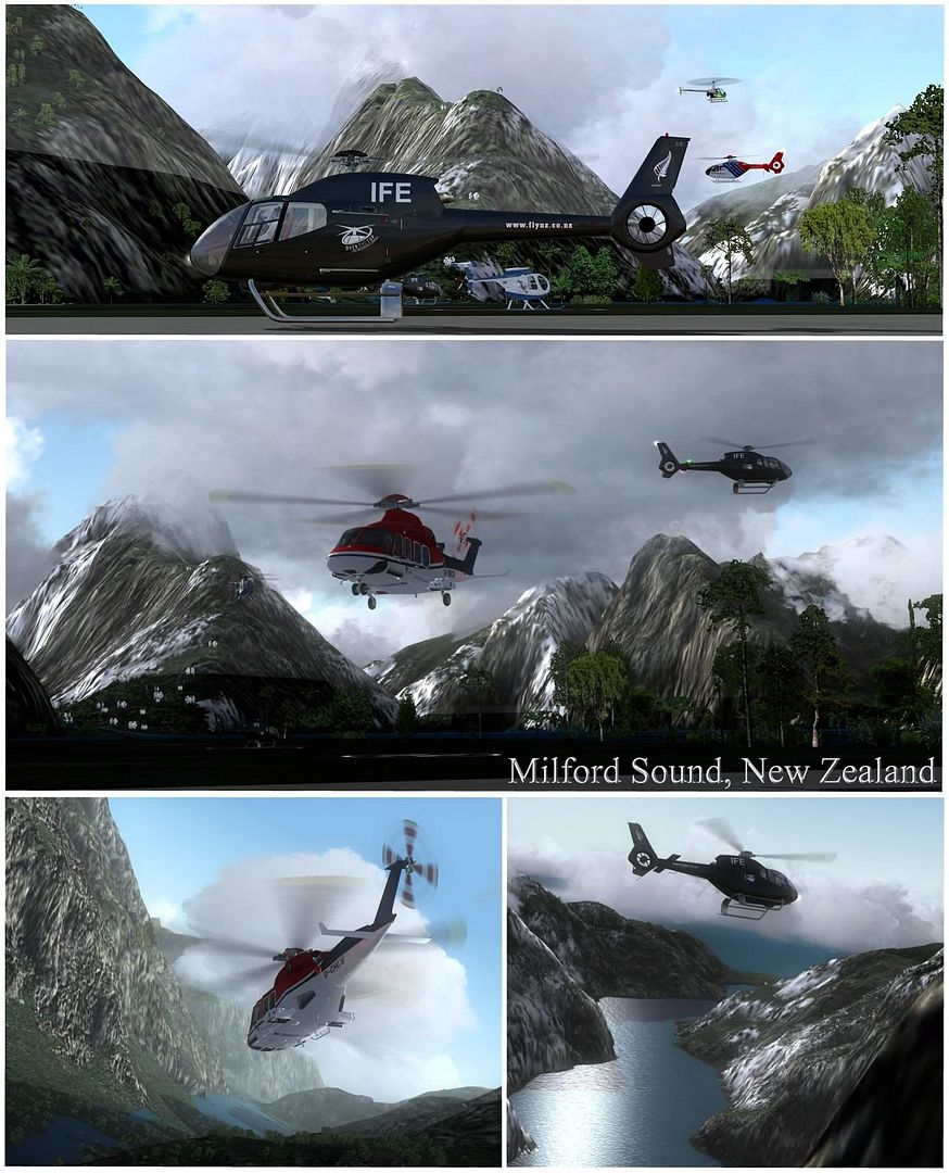 Looking at the recent Milford Sound thread, I was driven to revisit...with a clutch of rotary wings, courtesy of Flight1's AI helo pack.