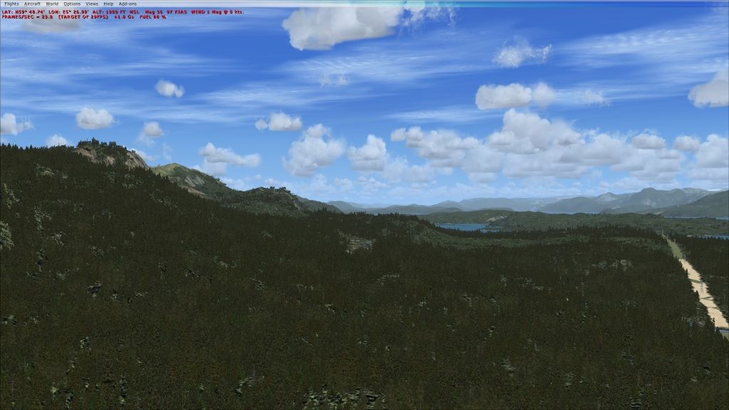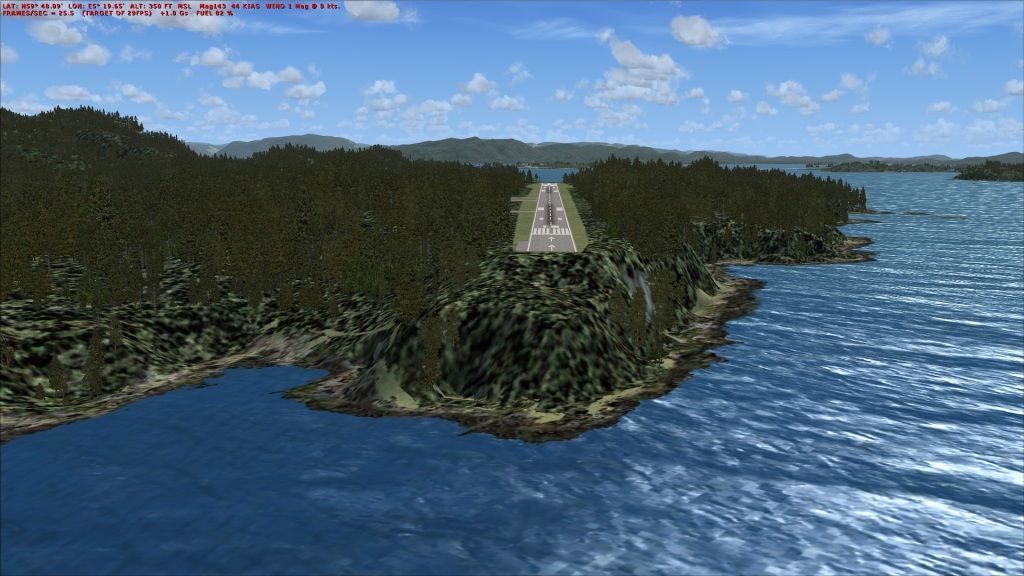 FSX with VLC and ORBX has given those of us who mostly "fly" below 1500' AGL a new level of enjoyment. A Norwegian group have developed a similar scenery series for Norway. I receommend you try it. The scenery was released recently on Flightsim as a single file "Airports of Norway". A number of related files are identified within the package as being necessary to fully enjoy the work; primarily mesh, landclass etc. While there is an English language "how to" with the first file the others are in Norgwegian. I activited the scenery in the order of (as they seemed to me at least) mesh, landclass, and airport files. It seems to work well; for most of it anyway.