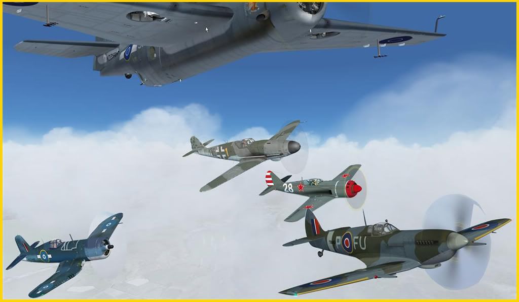 Hahahah cheers guys , a mixture of FXS-FS9 Realair FSX Spitty , FS9 's AH Corsair and LA9 , Skyunlimted ME109 ...... Nahhh ... its a photo Gav took from a open rear cockpit Harvard laugh.gif