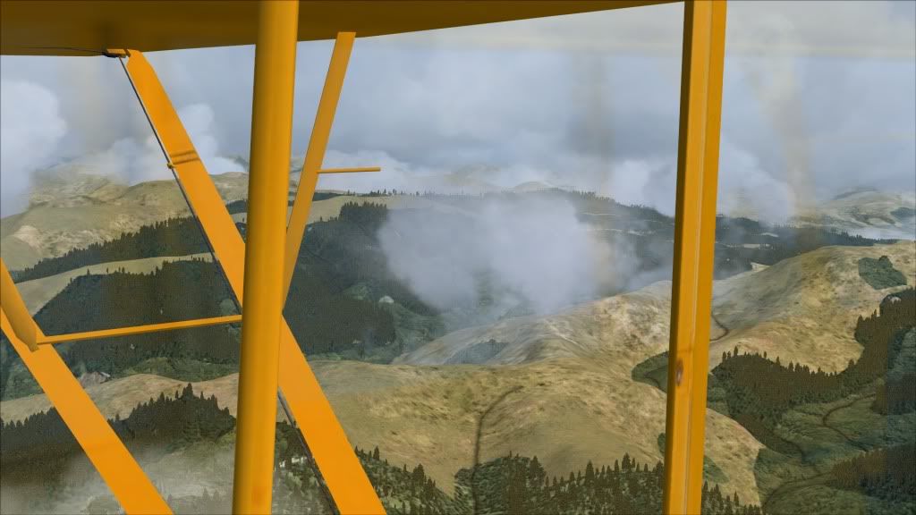 The Meteo report said winds calm, but I was still being thrown around a fair bit over the tops. And visibility was a bit iffy too, the ceiling was at 2800 ft, which meant in practise I was flying into cloud whisps every time I went over 2000 ft. It kept things interesting, especially since I was trying to limit my use of the GPS to "only when I have no idea where I am", and I was flying from my 20 year old memory of the lay of the land around there. Boy it sure looks different from the air!Niels Albers: Flying unskillfully with MS Flight simulator since version 1...