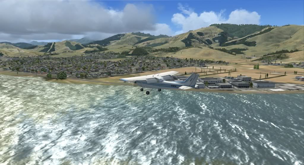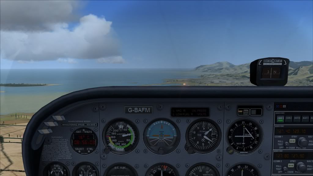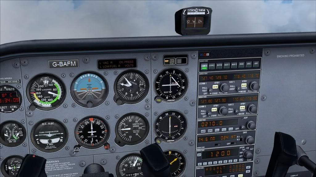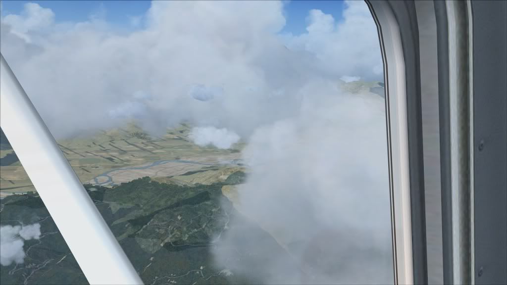 On the 15 NM DME turn. And no, I can't see very much at all out of the front window. Real pilots, please don't laugh at the figures, this is the first time I've tried this! Funny thing though: I was tuned into the tower frequency and could hear the tower warn a NZ link flight about me. I was in thick cloud and the link pilot reported traffic in sight! He must have had radar vision! I couldn't see a thing!