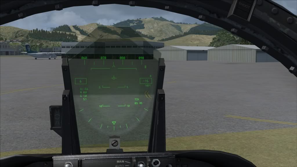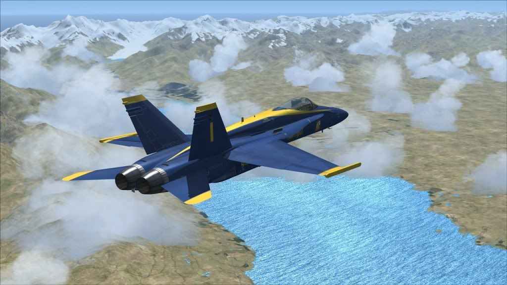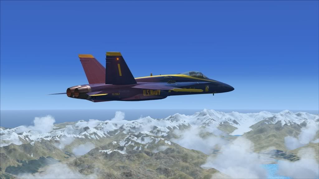 That's pretty quick! But with an experienced pilot I can believe it. I wasn't watching the clock too closely, but I'm pretty sure I did the flight from take-off to parking in less than 30 minutes, including a lot of mucking around on landing. I still need to get a lot more practise on getting a steady rate of descent in a high AoA situation. Thankfully the F/A-18 has a fair number of idiot lights in the HUD. At least if you know how to read them. And I need to learn how to fly this beast economically too: I was under Bingo fuel on landing, because I used to much afterburner while going at Mach 1.5 along the Alps.