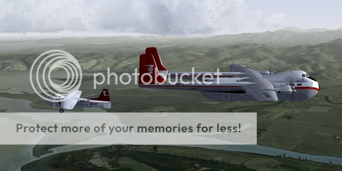 Argosy Woodbourne bound and the Bristol Freighter heading to Wellington.