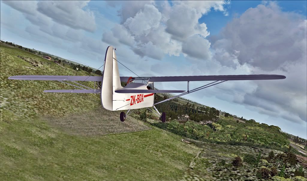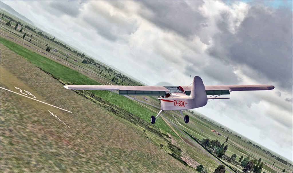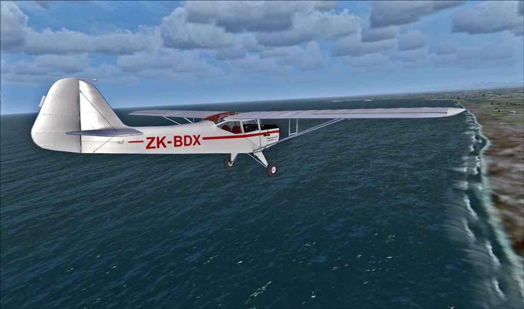Off the Timaru airport and following the Rangitata to the shoreline. Sharp eyes will note the missing tailwheel. The next shot reveals a missing pilot - what can I say?