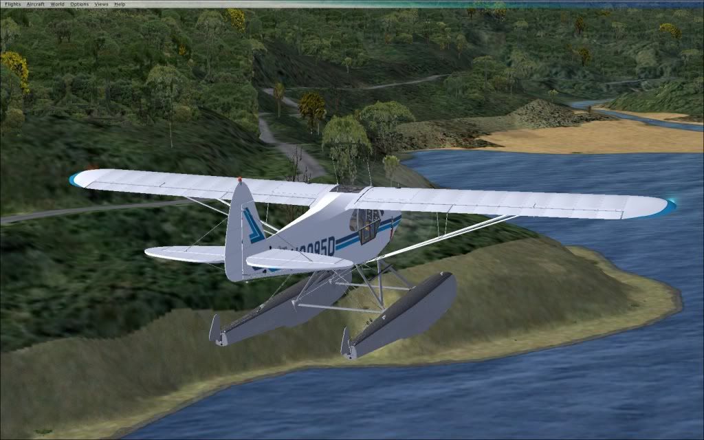 Piper Super Cub at the mouth of the Aniwaniwa Stream, Lake Waikarimoana