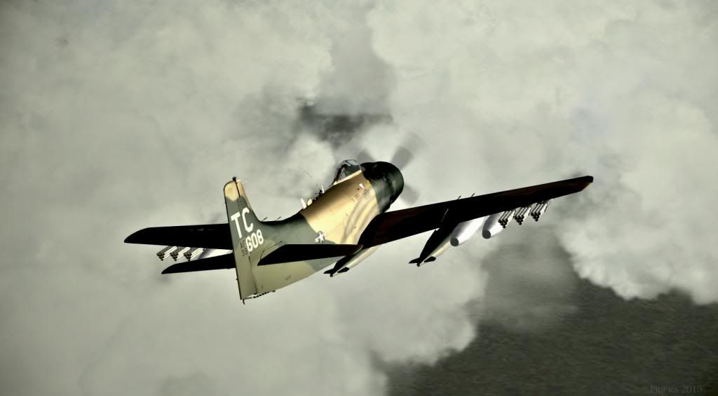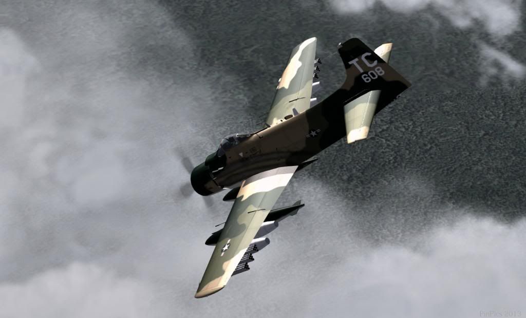 Tim's one has visible weapons, in the cockpit there are the arming switches for the center, inboard and outboard pylons, and clicking on those reveals them.. Here is is A-1H with weapons onboardLast edited by Kiwia1spad on Sun Mar 10, 2013 1:04 pm, edited 1 time in total.