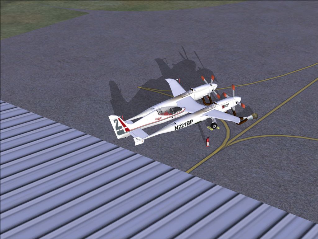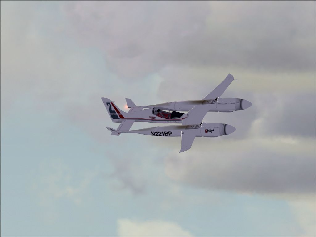 When thinking about my entry for this months screen shot comp i thought about the knights of the sky theme and some of the modern day knights of the sky are seen one week a year in the skies of Nevada... the National Championship Air Races at Stead field show super pilots pushing their steeds to and beyond the limits, one or 2 have made the effort in the last 25 years to create a truly unique racer for the unlimited field that does not chop up a valuable WW2 warbird, one of the most exotic was Bob Ponds racer designed by Burt Rutan as a true modern alternative to the Mustangs and Sea Furies that have dominated the unlimted class. The racer, powered by 2 Electramoitve Racing engines based on Nissan Auto engines adapted for aviation, the Pond had potential but was hamstrung by the engines which never developed the power they should have. The 'Pond' garnered much attention a bit negative and a bit positive in her short life before she was lost at Reno after an oil leak caused a forced landing which also claimed the life of pilot Rick Brickert in 93.