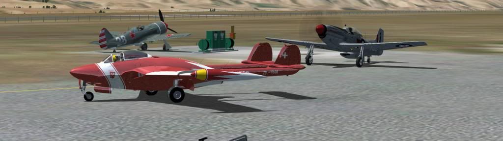 Rob Richardson's Swiss Venom ZK-VNM and WBS P-51D NZ2415 taxi past the freeware AH Lavochkin La9 at Wanaka for a practice display