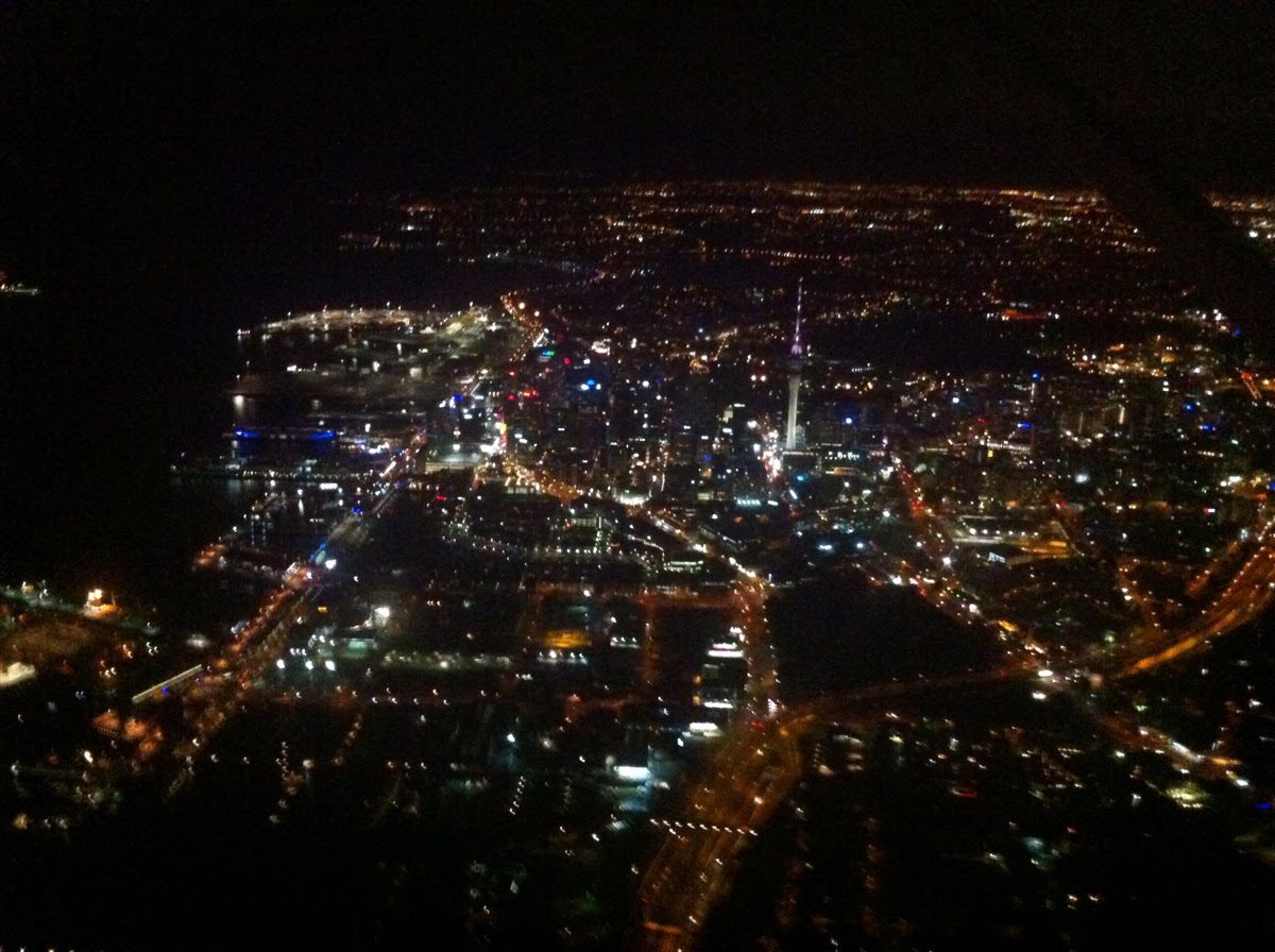 To add to that list, I've observed the Port of Auckland is very under lit. It's the brightest things for miles (see photo), and you can see it almost from Whangarei up at 8000 feet on a clear night. The same goes for the Marsden Point Oil Refinery when flying the reverse direction.