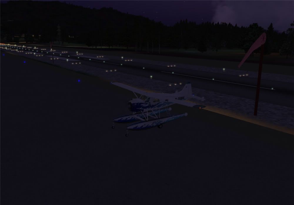 Blast. OK, rev the engine up - that should wake him. Ah, yes, the runway lights are on.... OK fellers, we're off
